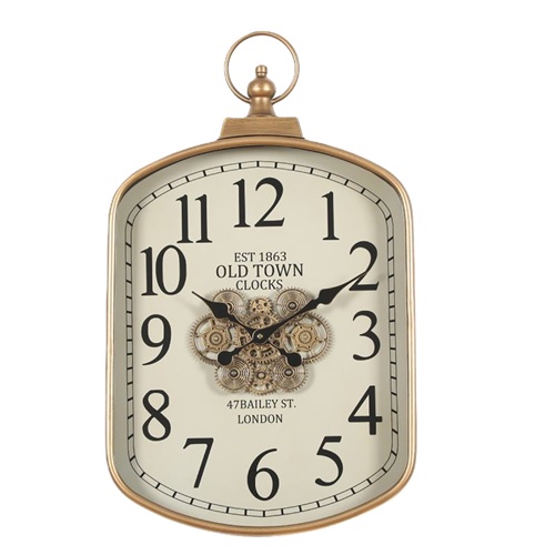 Put this rectangular clock where people can see it when they walk in. The unique FOB stopwatch shape breaks things up from all the round clocks out there. Old Town London design brings vintage character with moving gears visible through cutouts.